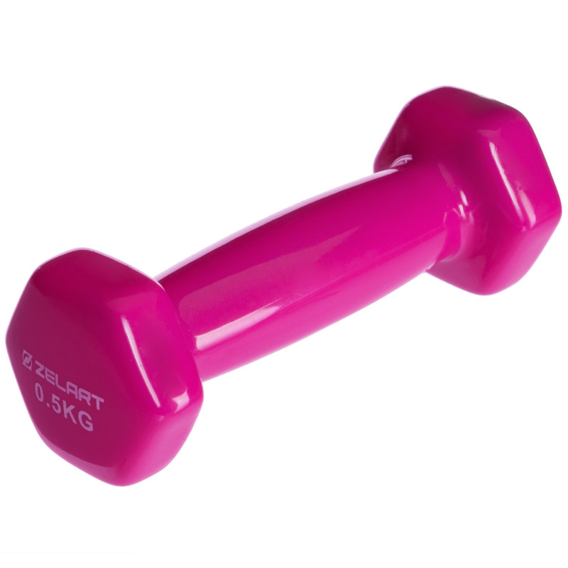 Гантель для фитнеса виниловая 1штука Zelart TA-2777-0_5 (1x0,5кг) (MD2016-0,5) (цена за 1шт, цвета в ассортименте)