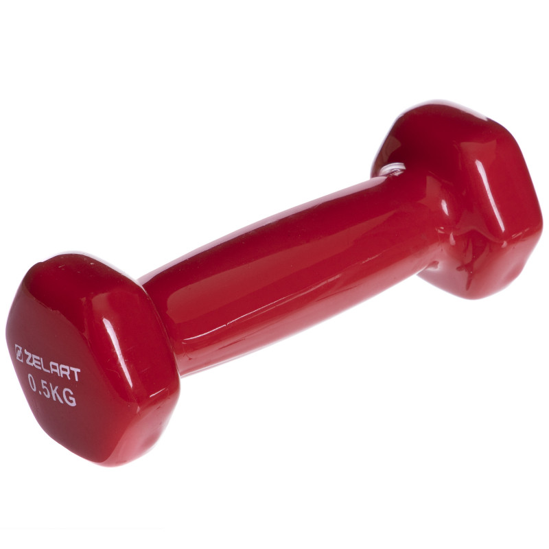 Гантель для фитнеса виниловая 1штука Zelart TA-2777-0_5 (1x0,5кг) (MD2016-0,5) (цена за 1шт, цвета в ассортименте)