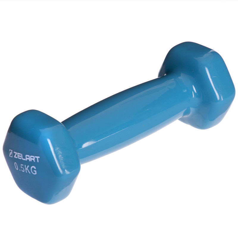 Гантель для фитнеса виниловая 1штука Zelart TA-2777-0_5 (1x0,5кг) (MD2016-0,5) (цена за 1шт, цвета в ассортименте)