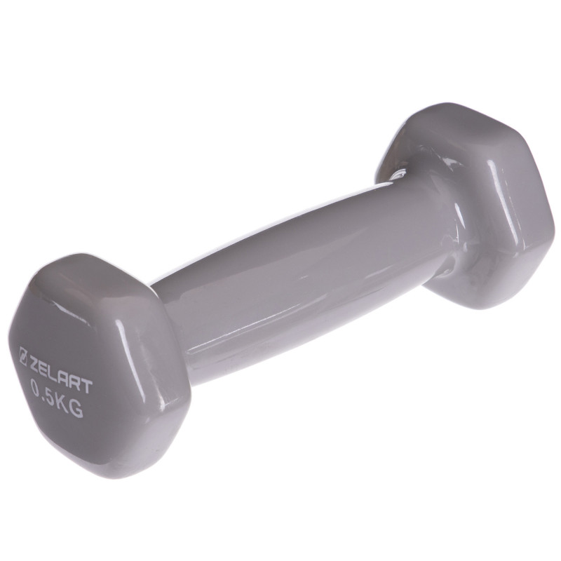 Гантель для фитнеса виниловая 1штука Zelart TA-2777-0_5 (1x0,5кг) (MD2016-0,5) (цена за 1шт, цвета в ассортименте)