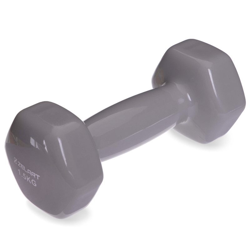 Гантель для фитнеса виниловая 1штука Zelart TA-2777-1_5 (1x1,5кг) (MD2016-1,5) (цена за 1шт, цвета в ассортименте)
