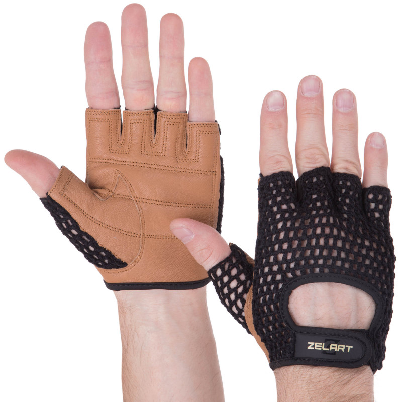 Перчатки для фитнеса и тренировок ZELART SB-161967 размер S-L (PL, хлопковая вязка, PVC, черный-коричневый)