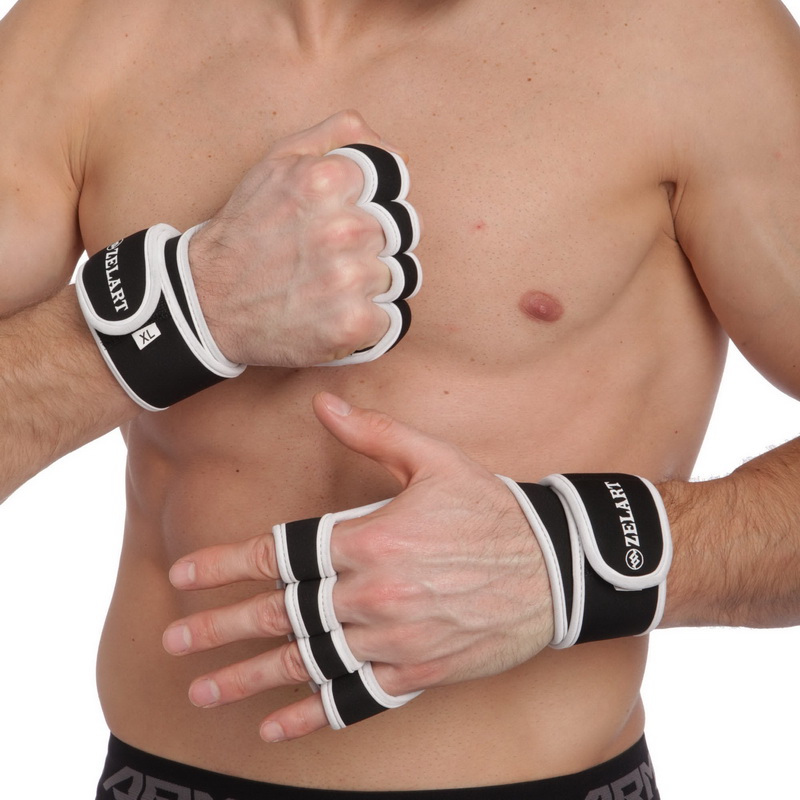 Перчатки-накладки для тяжелой атлетики и зала Zelart ZG-3616 (PVC, р-р S-XXL, черный-белый)