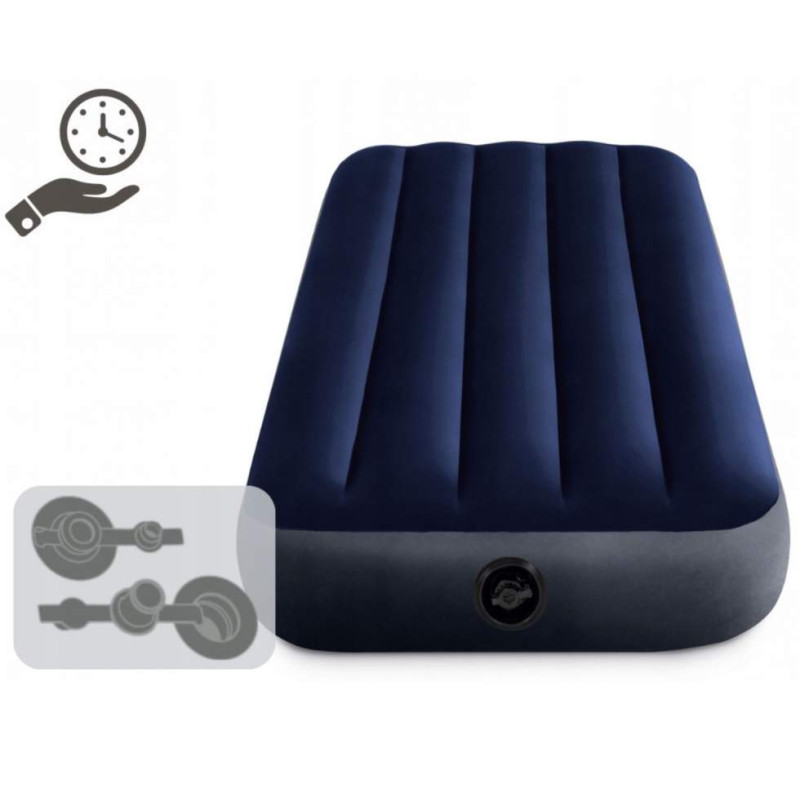 Надувний матрац intex 64756 прийшов на зміну Intex 68950 завширшки 76 см, серія Classic Downy Bed може з комфортом помістити одну особу. Після придбання матраца ви більше не будете панічно шукати куди визначити спати гостей, що затрималися до ночі. Якщо раптово зібралися на природу не доведеться думати, що підстелити і на чому сидіти. Також ці матраци використовують у наметах, щоб не спати на "голій" землі. Матрац Intex 64756 допоможе зберегти час у багатьох несподіваних життєвих ситуаціях.