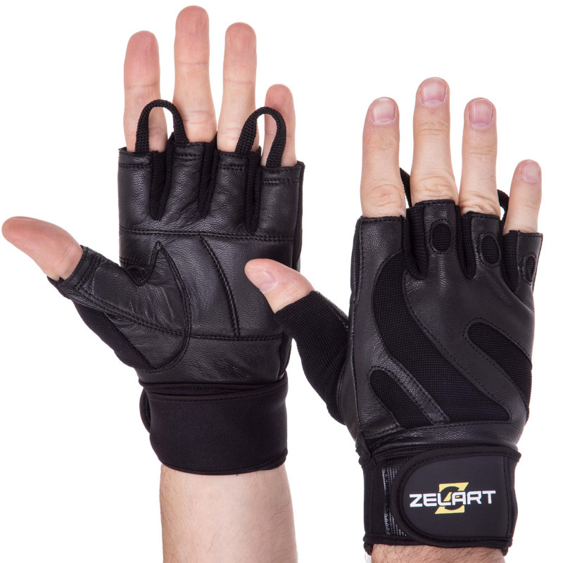 Перчатки для фитнеса и тяжелой атлетики кожаные ZELART SB-161064 (спандекс, неопрен, открытые пальцы, р-р S-XXL, черный)