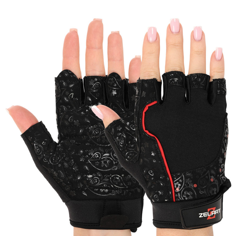 Перчатки для фитнеса и тренировок ZELART SB-161736 (PL, PVC,открытые пальцы, р-р XS-M, черный)