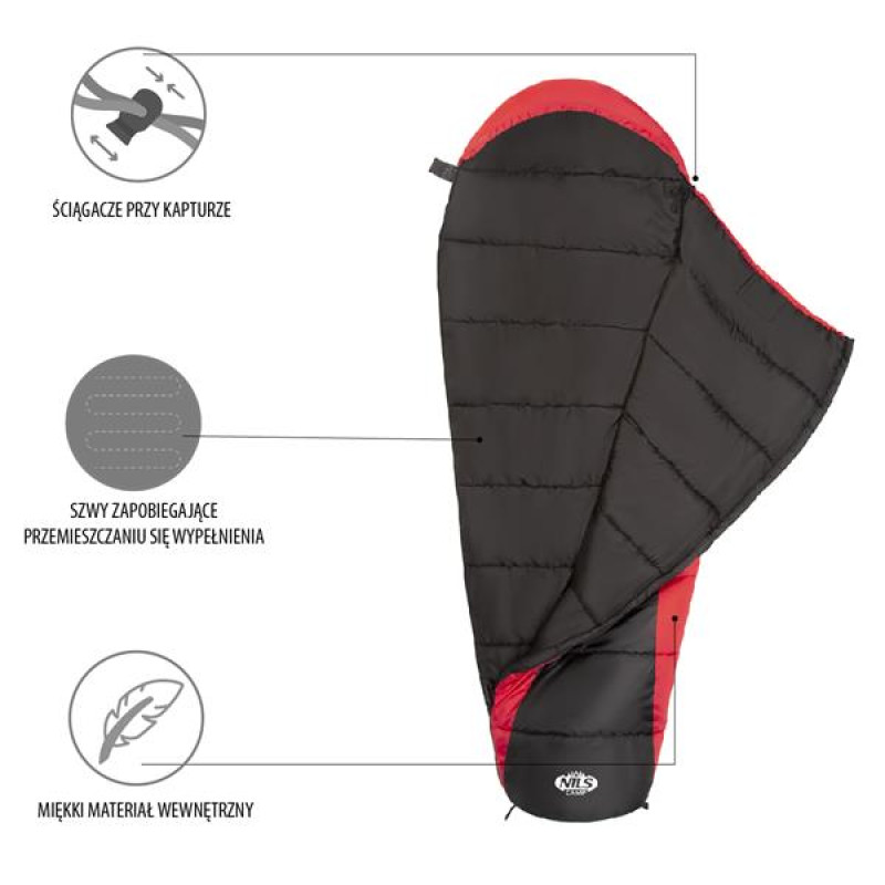 Спальний мішок NILS CAMP NC2012 чорно-червоний
