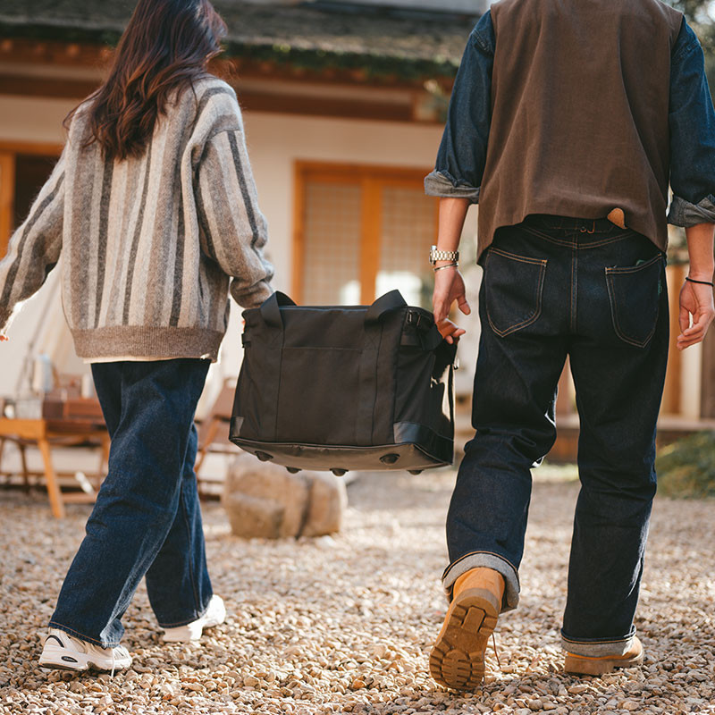 Об'єм сумки становить 35 л. Її внутрішній простір можна ділити на кілька секцій, використовуючи роздільні стінки габаритами 30 х 28 см (є в комплекті). З зовнішньої сторони аксесуара є ряд петельок для кріплення інструментів, столового приладдя та інших невеликих предметів. 5 ніжок з нижньої сторони сумки не дають дну намокнути у разі встановлення на вологу поверхню.