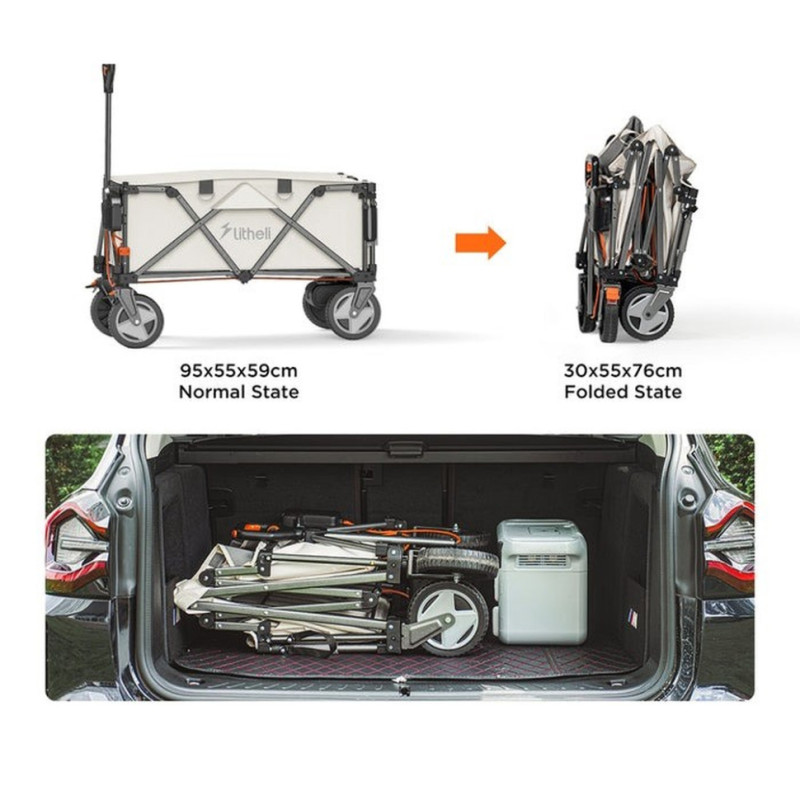 Візок з електроприводом від Litheli — це сучасне рішення для тих, хто цінує зручність та функціональність. Модель підходить для транспортування речей під час туристичної подорожі та дачного відпочинку, для військових у польових умовах та для повсякденних завдань. Візок також актуальний для торгівлі, дозволяючи без зайвих фізичних зусиль переміщати вантаж на великі відстані.