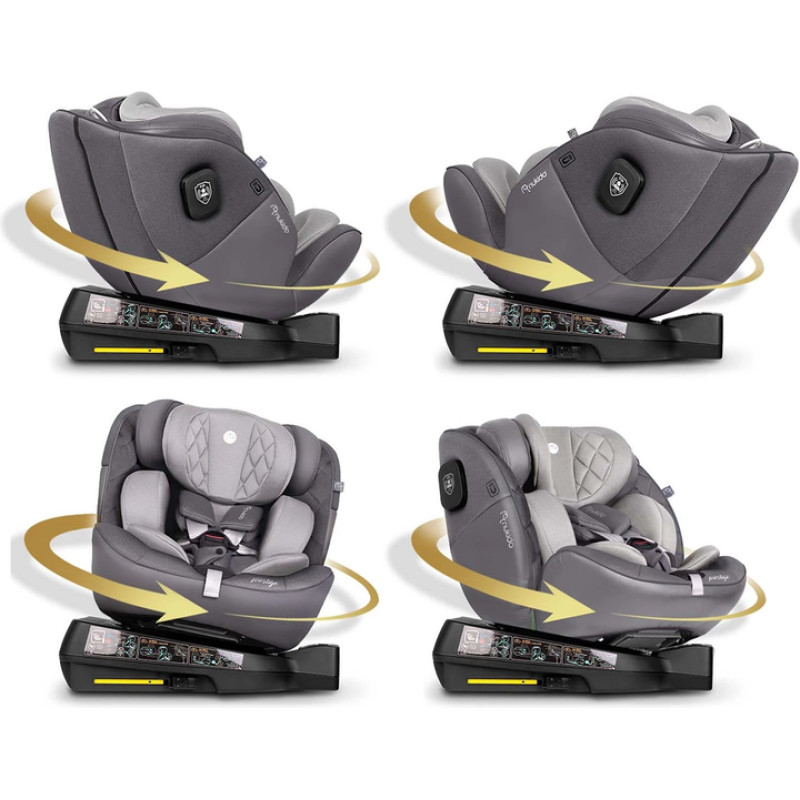 Поворотна конструкція забезпечує легкий доступ до дитини з обох боків, що значно полегшує пристібання ременя безпеки та виймання дитини. Можливість фіксації в 4 положеннях забезпечує комфорт у будь-якій ситуації.