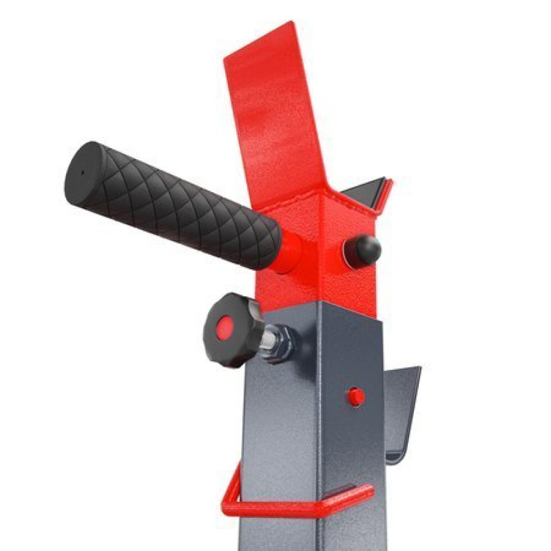 Основне призначення спорядження — забезпечити належний захист під час жиму штанги. Для цього використовуються два червоних регульованих кронштейна, а також два безпечних зігнутих товстих листа металу, приварених до конструкції. Червоний замок запобігає випадковому переміщенню підставки, що може становити небезпеку для здоров’я.