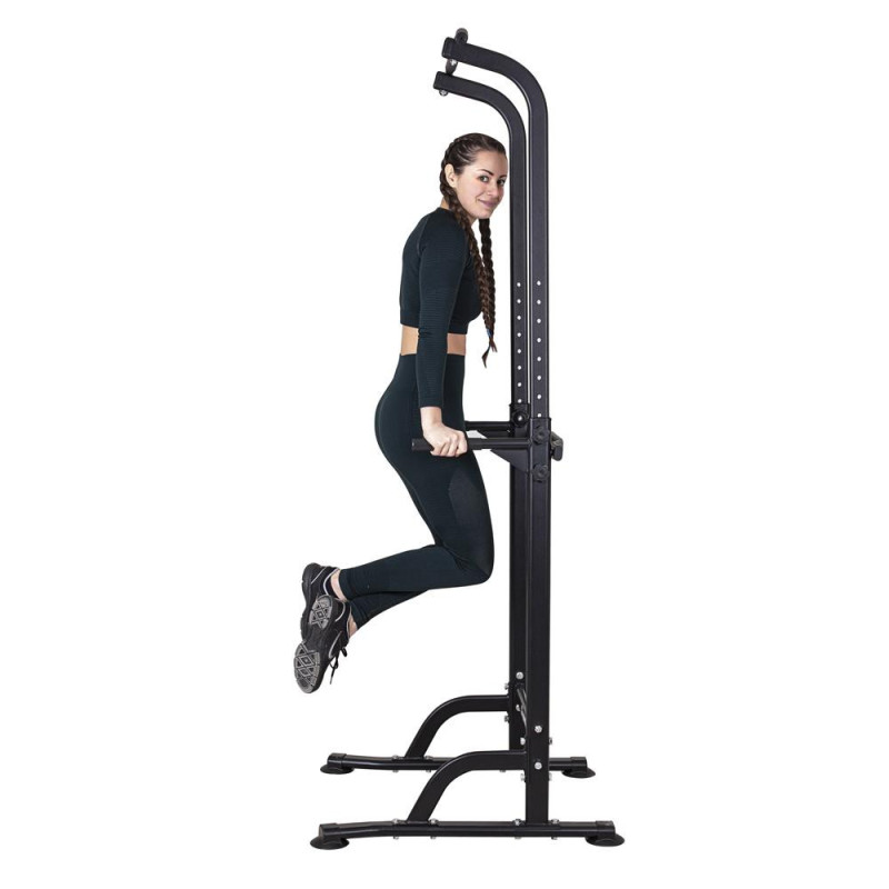 Ідеально підходить для домашніх вправ, самонесуча підтягувальна планка inSPORTline Power Tower PT60 важить всього 17 кг і завдяки своїй компактній основі не займає багато місця. Незважаючи на відносно невелику вагу, конструкція міцна і стійка, знижуючи вагу до 120 кг. Підтягувальна планка довжиною 96 см має на обох кінцях гумові ручки. Ви також оціните регульовані по висоті поручні (їх можна встановити на 9 різних висот) і віджимаючі ручки внизу.