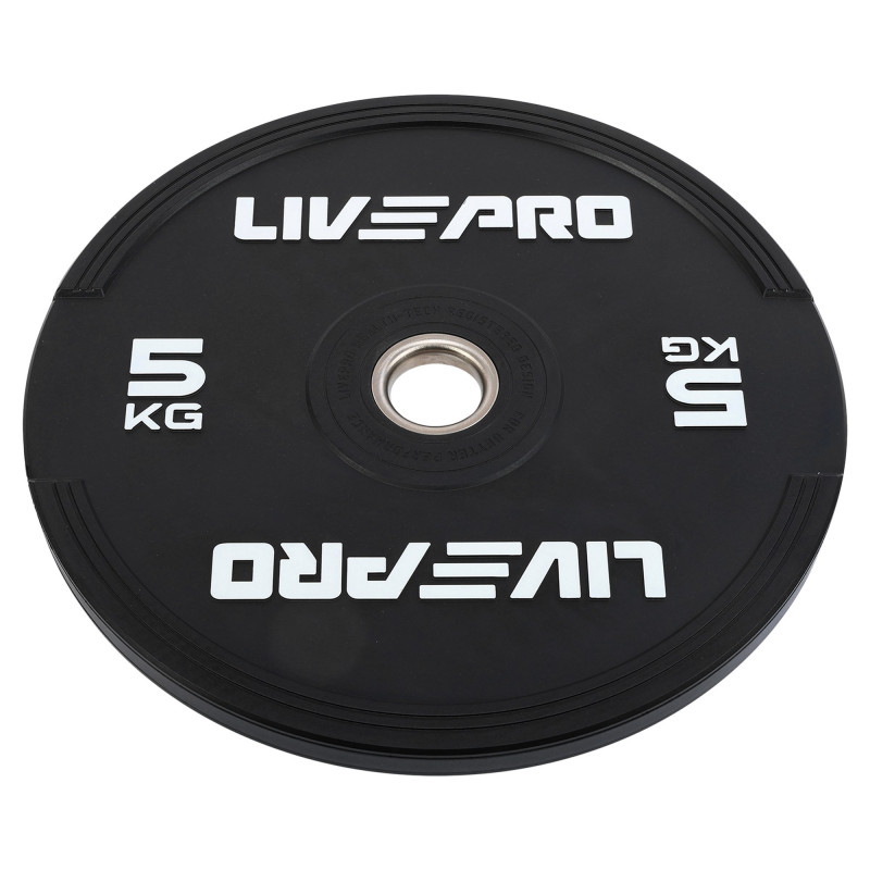 Бамперные диски резиновые Bumper Plates внутренний ø50.5мм LiveUp LP8331-5 5кг (d-45см,черный)