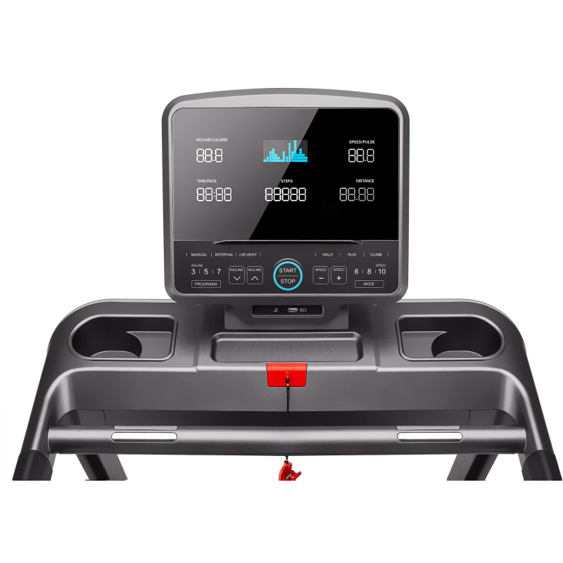 Беговая дорожка имеет мощный двигатель - 4 л.с., благодаря которому вы можете бегать со скоростью от 0,8 до 20 км/ч. Точная регулировка мощности позволяет вам установить скорость, которая идеально подходит вашему уровню подготовки. Угол наклона бегового полотна регулируется автоматически до 15%. Система амортизации 3S поглощает вибрации и ушибы, чтобы не нагружать ваши суставы во время бега.