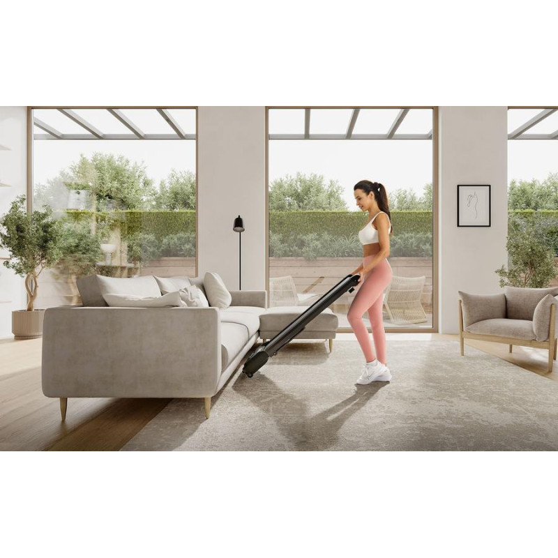 Завдяки оптимальним розмірам бігова доріжка YOUGO займає лише 0,67 м². Тому вам не потрібно багато місця, щоб встановити його та насолоджуватися перевагами повсякденної діяльності в комфорті власного дому. Тоді, після тренування, ви зможете сховати його практично скрізь!