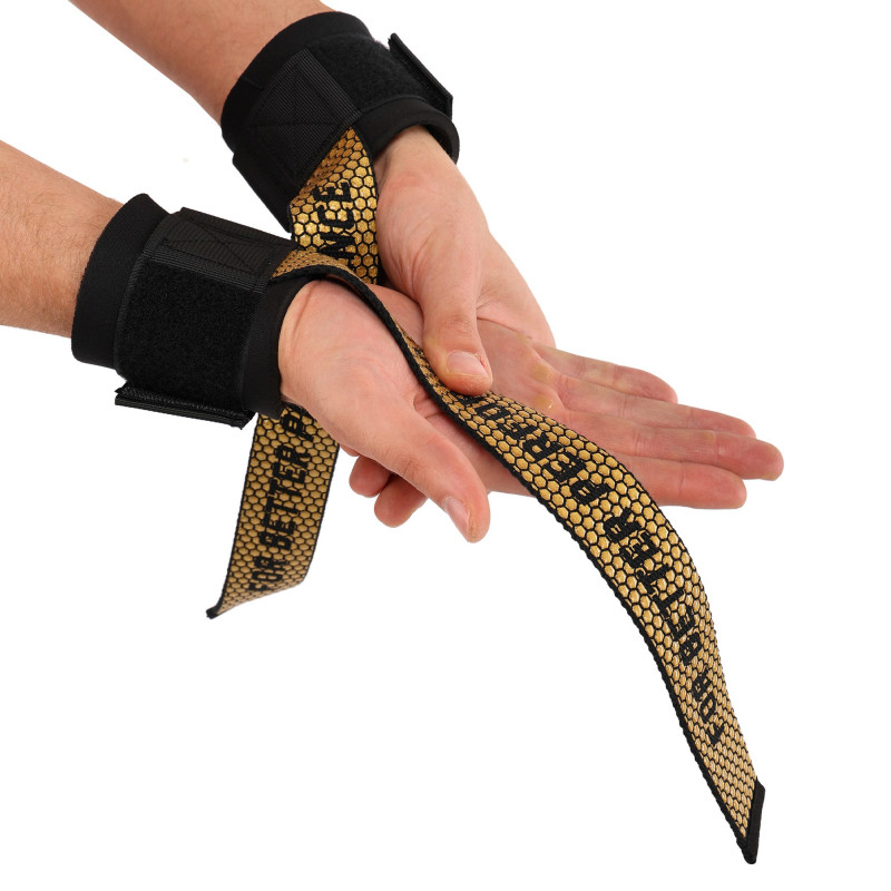 Бинты кистевые с лямкой для жима и тяги (2шт) LiveUp LP8770 (полиэстер, хлопок, вес уп. 175гр, черный-золотой)