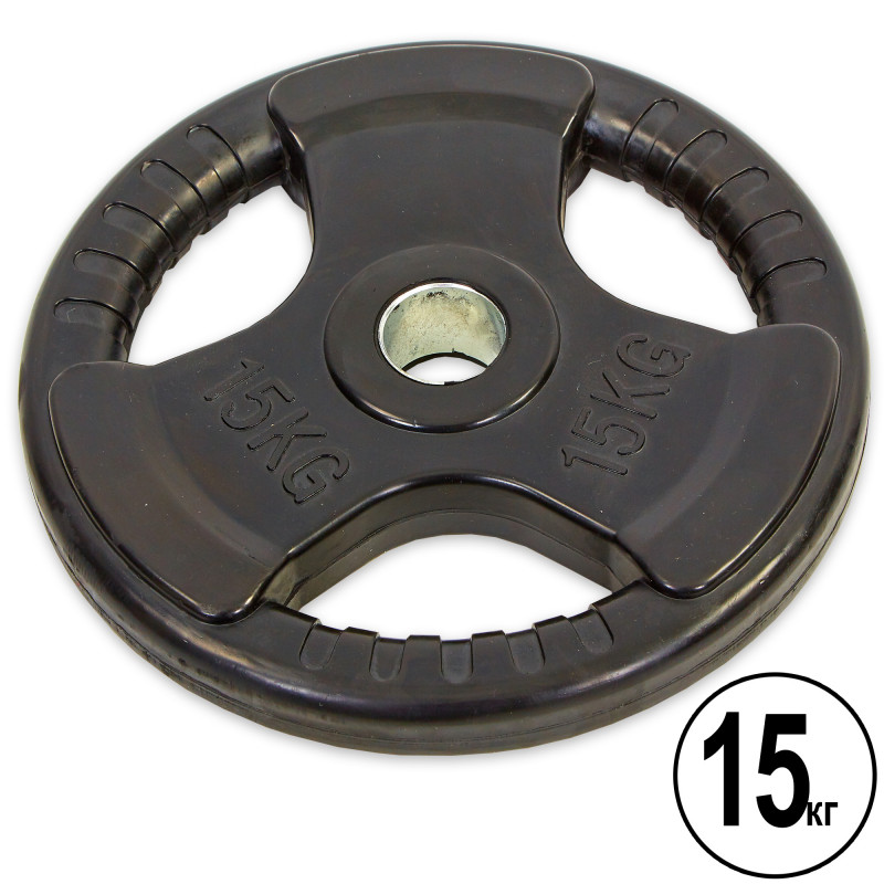 Блины диски обрезиненные с тройным хватом и металлической втулкой внутренний ø52мм Record TA-8122-15 15кг (черный)