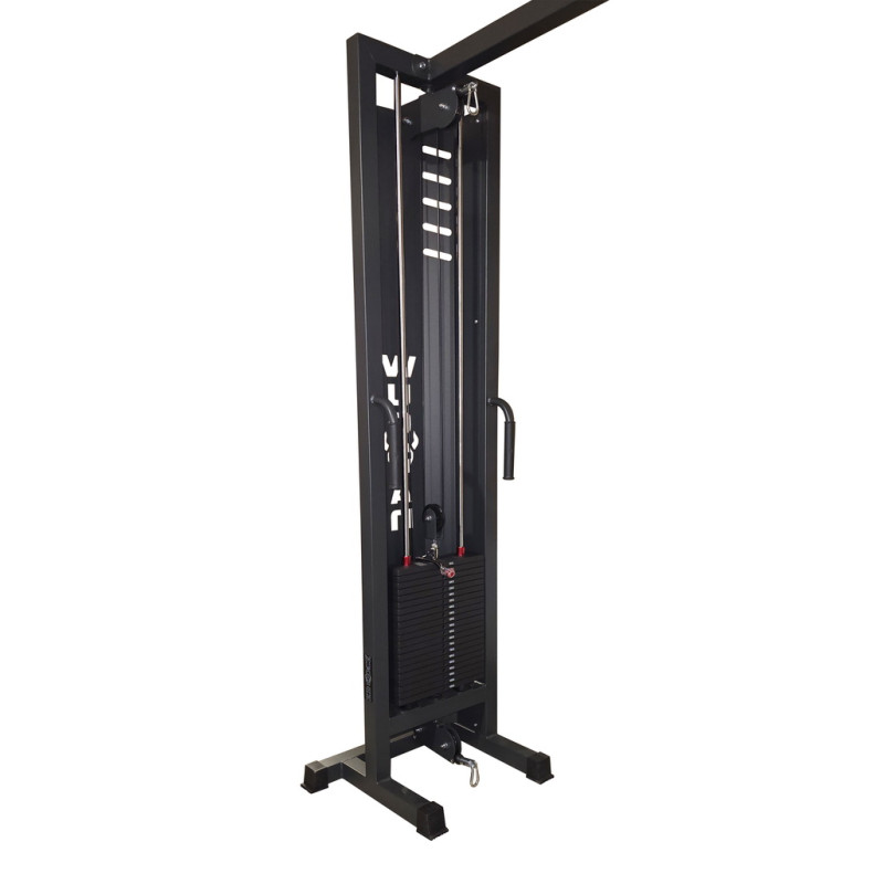 Тренажер оснащен нижними и верхними тяговыми блоками, перекладиной для подтягиваний и ручками, что дает возможность выполнять множество упражнений для различных мышечных групп.