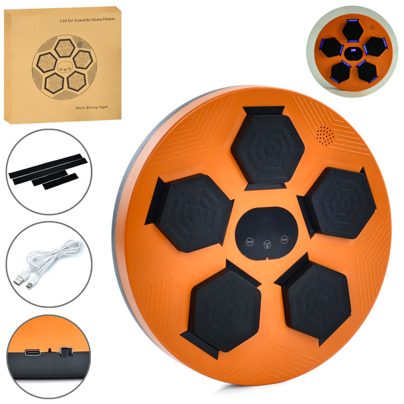 Тренажер-мишень, боксерский автомат, настенный боксерский тренажер, 5 целей, акумулятор, электонный табло, Bluetooth, звук(англ), свет, 18скоростей, 9 режимов, Type-C шнур, крепление-лепучки,в кор-ке