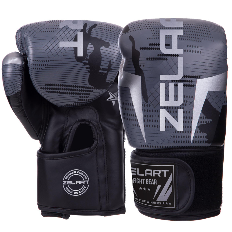 Перчатки боксерские PU Zelart BO-2532 (размер 6-14oz, черный-серый)