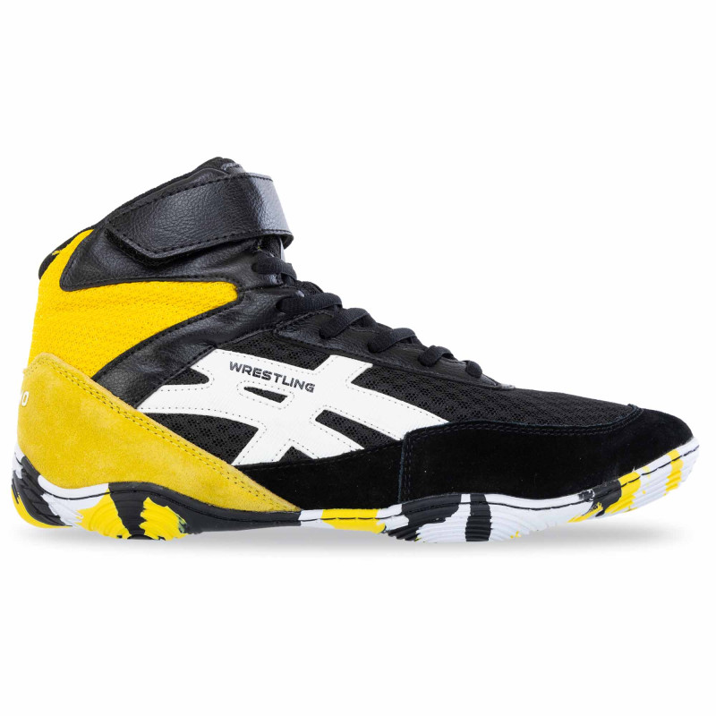Борцовки обувь для борьбы размер 40-45 Wrestling DIFENO W-2005L-3 (верх-кожа, PL, низ-PU, черный-желтый)