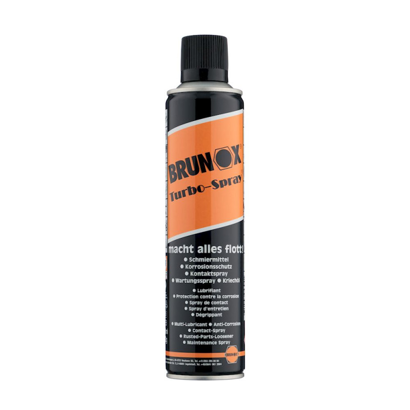 Масло Turbo-Spray призначається для того, щоб якісно очищати і змащувати зброю. Завдяки унікальному складу, дрібні частинки томпаку, пороху і різних металів розчиняються. Даний засіб від Brunox також відмінно підійде, щоб виконати консервацію зброї на короткий термін (до півроку). Після обробки витирати олія не потрібно, так як воно не липці і утворює плівку для захисту від корозії і вологи.