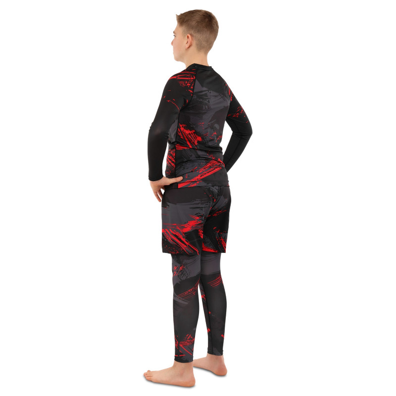 Костюм компрессионный детский рашгард лонгслив штаны и шорты VNM черный-красный 9529B-9629B-V5020 XXS