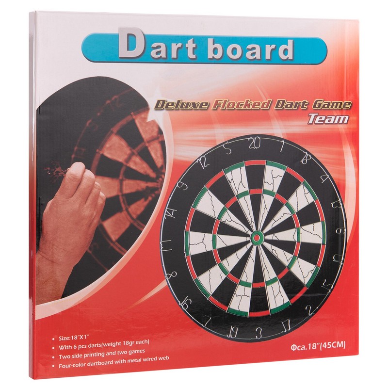 Высококачественная флокированная мишень Flocked BL-18012 имеет сниженный уровень отскока. Модель диаметром 45 см выполнена в виде традиционной 20-очковой игры. Плотное покрытие флоком обеспечивает более яркую цветопередачу и долговечность. Поставляется в комплекте с 6 дротиками и настенным креплением.
