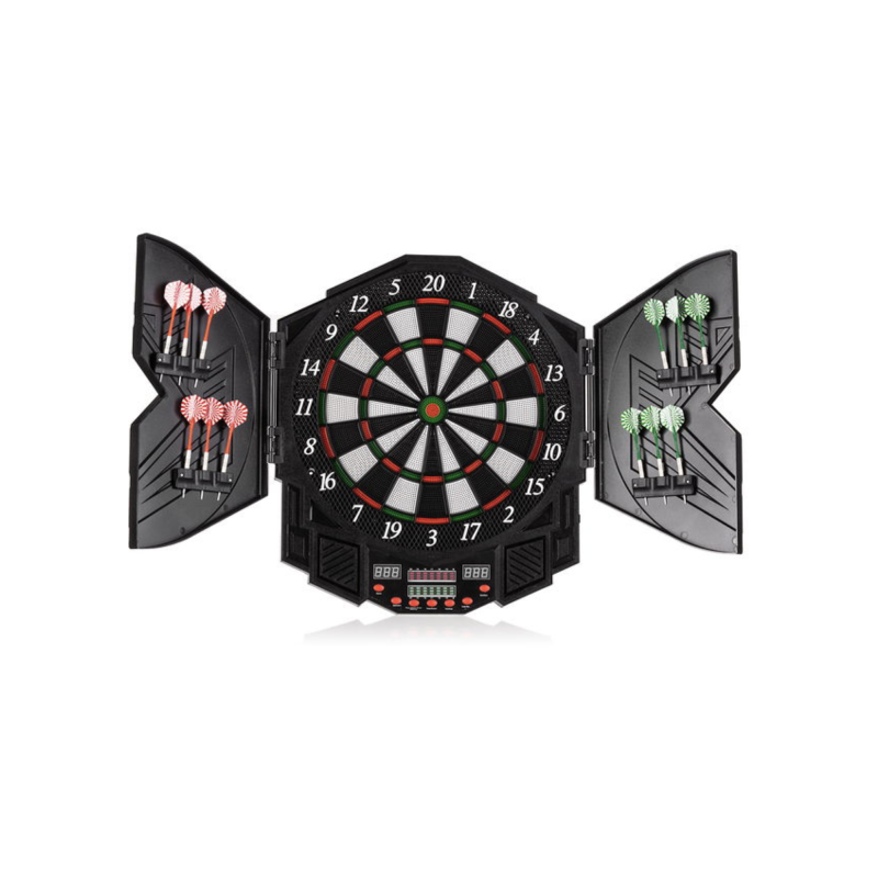 Электронный дартс Outtec DB2000 - это увлекательное развлечение для всей семьи! Он рассчитан максимум на 8 игроков. Эта модель предлагает 27 игр и 216 вариантов. Преимуществом дартса является автоматическое отключение при длительном бездействии, благодаря чему вам не придется за это беспокоиться. Дополнительной привлекательностью является звуковая сигнализация, которая разнообразит ваш игровой процесс. DB2000 оснащен 4 светодиодными дисплеями, которые точно определяют результаты и настройки игры. Сертификаты CE и RoHS подтверждают, что эта модель высококачественная полностью безопасна для домашнего использования. Вместе с дартсом вы получите 12 твердых дротиков и 24сменных наконечника