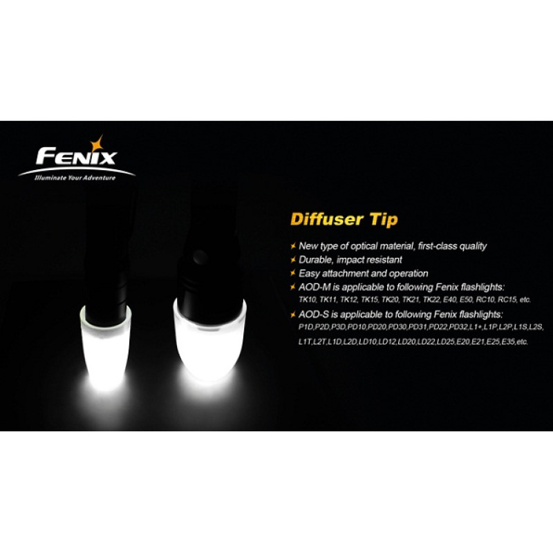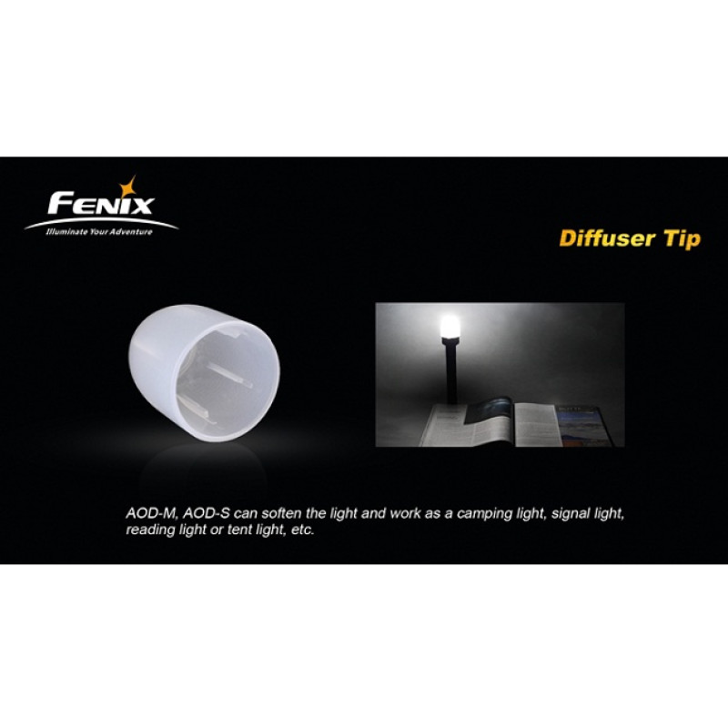 Новинка від компанії Fenix – дифузійний фільтр-насадка AOD-M. Дифузійний фільтр-насадка AOD-M призначений для перетворення потужного вузькоспрямованого променя ліхтаря в розсіяне світло, який забезпечує рівномірне освітлення простору. Як варіант, дану модель можна використовувати в якості сигнального пристрою для подачі світлових сигналів.