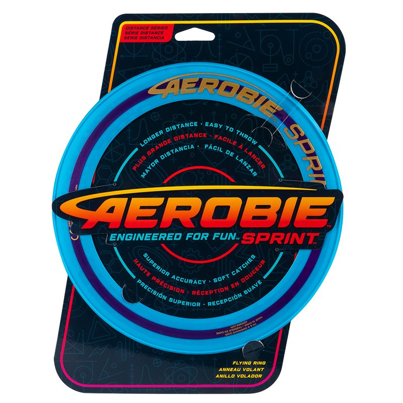 Гравці всіх рівнів оцінять літаючий диск Aerobie Sprint. Завдяки унікальній конструкції колесо рівномірно плаває в польоті - ніби ковзає по невидимому шару льоду. Ефект прямолінійного польоту працює навіть при різній швидкості кидка. Оскільки край кільця виготовлений з пом'якшеної гуми, воно відмінно зчіплюється з поверхнею і легко відскакує від будь-яких перешкод, не пошкоджуючись.