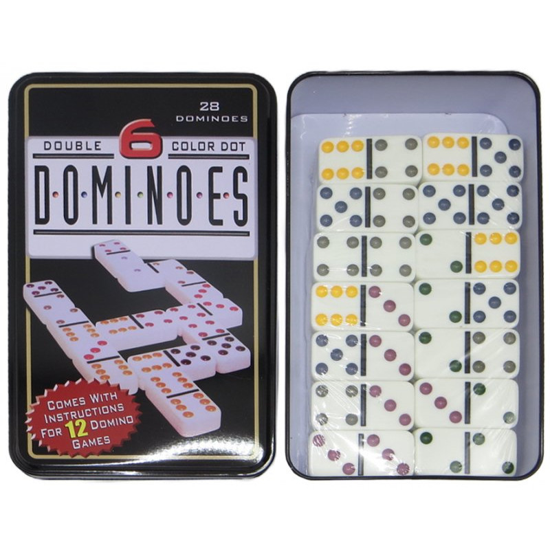 Это домино представляет собой стандартный набор из 28 костяшек, имеющих традиционный вид – разделённая надвое лицевая сторона с определённым количеством точек и одинаковые «спинки». Костяшки изготовлены из высококачественного пластика, характеризующегося чрезвычайной прочностью. Благодаря этому они способны выдержать практически любые удары о стол, которые часто случаются в пылу игры. Для хранения костяшек предусмотрена аккуратная компактная коробка, изготовленная из металла.