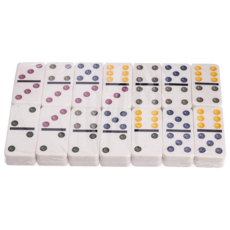 Это домино представляет собой стандартный набор из 28 костяшек, имеющих традиционный вид – разделённая надвое лицевая сторона с определённым количеством точек и одинаковые «спинки». Костяшки изготовлены из высококачественного пластика, характеризующегося чрезвычайной прочностью. Благодаря этому они способны выдержать практически любые удары о стол, которые часто случаются в пылу игры. Для хранения костяшек предусмотрена аккуратная компактная коробка, изготовленная из металла.