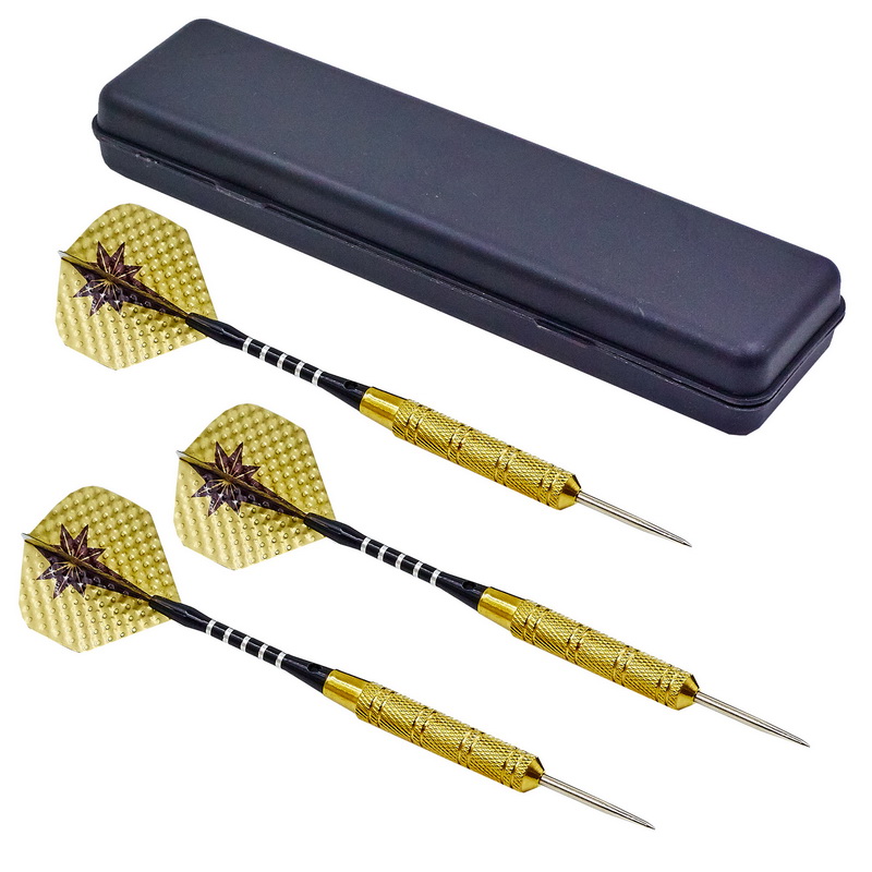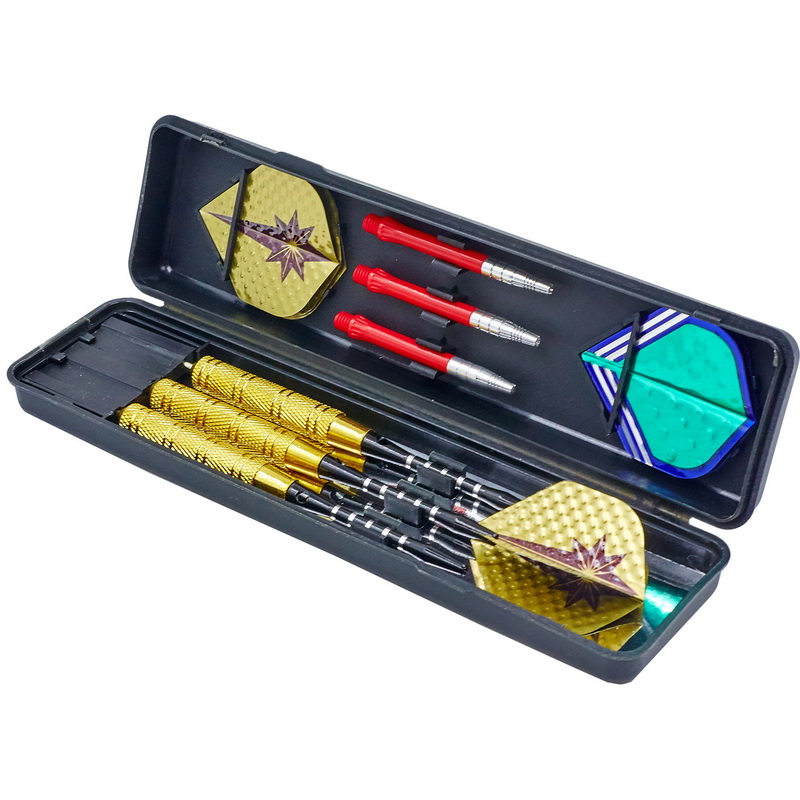 Центральная часть дротика сделана из латуни золотисто цвета. Благодаря дополнительному комплекту хвостовиков и оперения можно с легкостью изменить дизайн дротиков. При изготовлении строго соблюдены все допуски, поэтому дротики имеют отличный баланс и контролируемый полет.