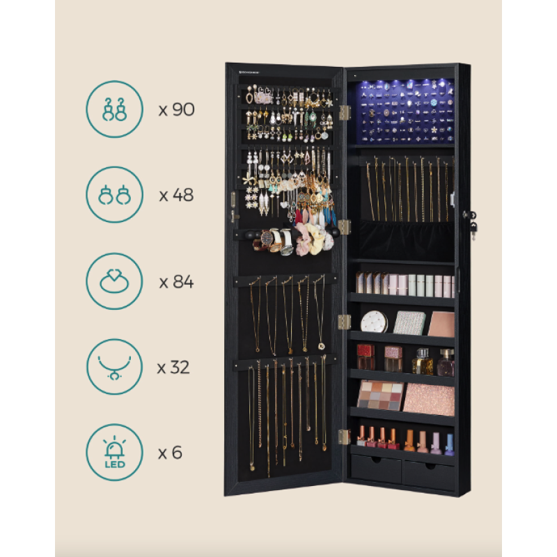 Представьте пространство, где каждый ваш аксессуар, каждое украшение находится в идеальном порядке и всегда под рукой. Это больше, чем просто зеркало - это настенный шкаф-органайзер Leobert, который предоставит вашей коллекции украшений должное место. Создано с вниманием к мельчайшим деталям, это зеркало-шкаф совмещает стильный коричневый дизайн с исключительной функциональностью. Настенное расположение позволяет экономить место, сохраняя при этом удобство доступа ко всем вашим аксессуарам. Встроенная светодиодная подсветка предоставляет этому органайзеру нотки роскоши, а внутренняя бархатная отделка обеспечивает защиту для ваших украшений.