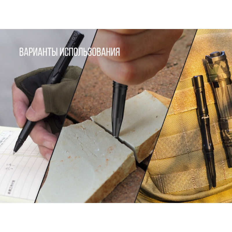 При належній вправності, надійна тактична ручка Fenix T5 зможе вас виручити як у повсякденному житті, так і в екстремальній ситуації. Вона має дуже міцний корпус з анодованого алюмінію марки 6061-T6 і оснащена склобою завдяки чому, за допомогою T6 можна розбити скло і нанести удар.
