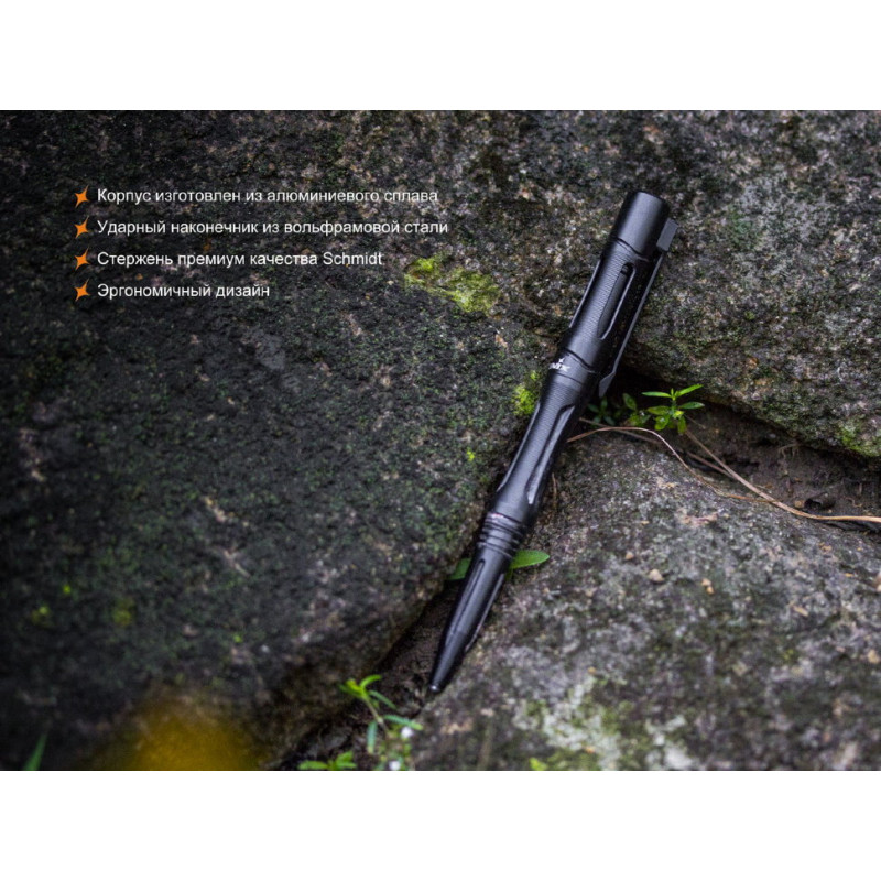 В представленій моделі встановлений високоякісний стрижень німецького виробництва — Schmidt P900M. Саме завдяки цьому стрижню, ручка Fenix T5 здатна писати практично в будь-яких умовах. При наявності необхідного інструментарію ви можете самостійно дозаправити чорнило в стержень або просто замінити його на новий. Таким чином, тактична ручка Fenix T5 надійно прослужить вам довгі роки і не підведе вас в будь-якій ситуації.
