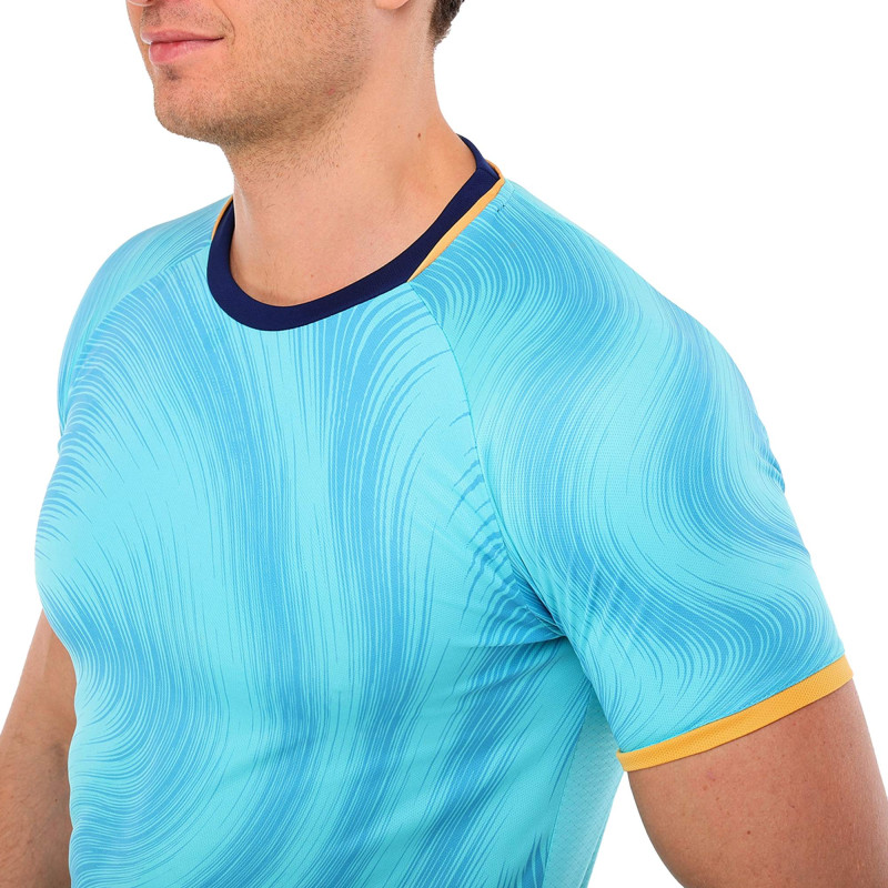 Комплект включает в себя футболку и шорты, которые создают гармоничный и удобный образ для игры в футбол. Футболка с удобной горловиной обеспечивает комфорт даже при активных движениях, не сдавливает шею и не мешает дыханию. Ее ткань эффективно отводит влагу, предотвращая перегрев и поддерживая ощущение свежести на протяжении всей игры.
