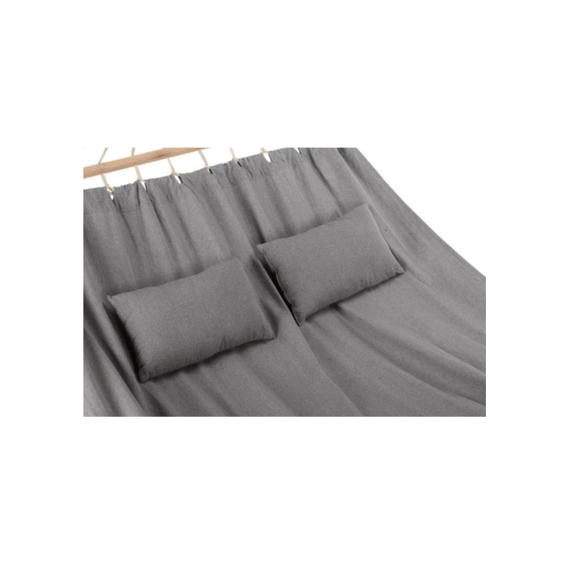 Полотно размером 200 x 150см изготовлено из высококачественной ткани, приятной на ощупь. Легкий, но крепкий материал идеально приспосабливается к телу, что позволяет отдыхать в непринужденном, естественном положении. Гамак Outtec характеризуется высокой стойкостью к изменению климатических условий. С обеих сторон шнурки крепежа эстетично заплетены в привлекательный узор, заканчивающийся монтажными кольцами. В комплекте две подушки, что предоставит вашему отдыху новый уровень комфорта!