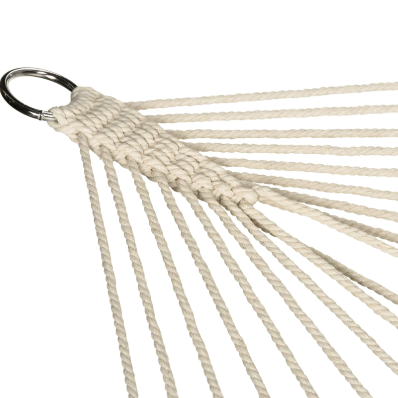 Полотно размером 200 x 140см изготовлено из ткани Оксфорд, приятной на ощупь. Легкий, но крепкий материал идеально приспосабливается к телу, что позволяет отдыхать в непринужденном, естественном состоянии. Гамак характеризуется высокой стойкостью к изменению климатических условий. С обеих сторон шнурки крепежа эстетически заплетены в привлекательный узор, заканчивающийся монтажными кольцами. В комплекте подушка, которая предоставит вашему отдыху дополнительный уровень комфорта!