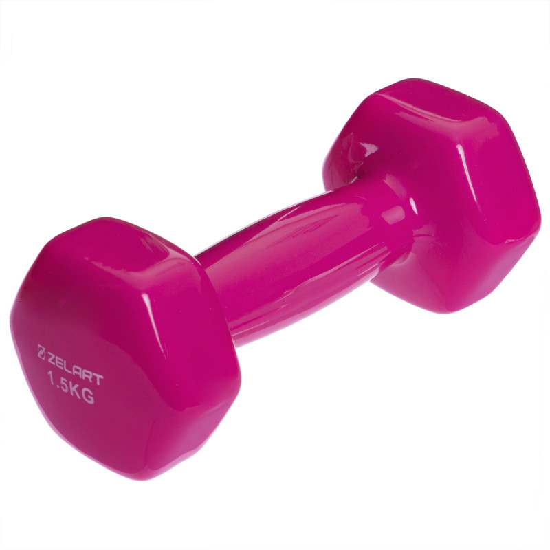 Гантель для фитнеса виниловая 1штука Zelart TA-2777-1_5 (1x1,5кг) (MD2016-1,5) (цена за 1шт, цвета в ассортименте)