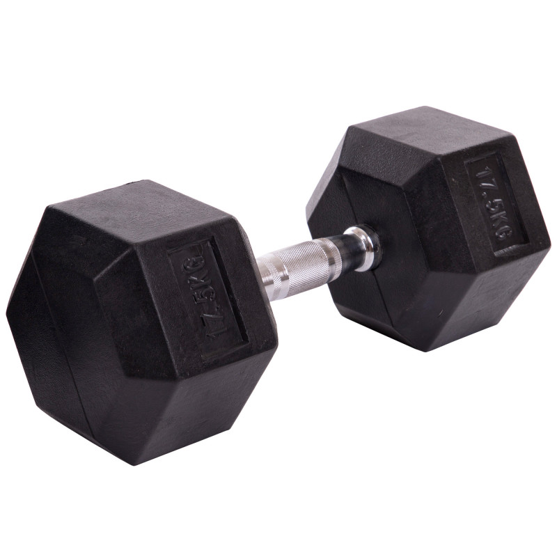 Гантель цельная шестигранная гексагональная обрезиненная 1штука SP-Planeta LN-1205-17_5 (1x17,5кг) (сталь хромированная, резина, вес 17,5кг)