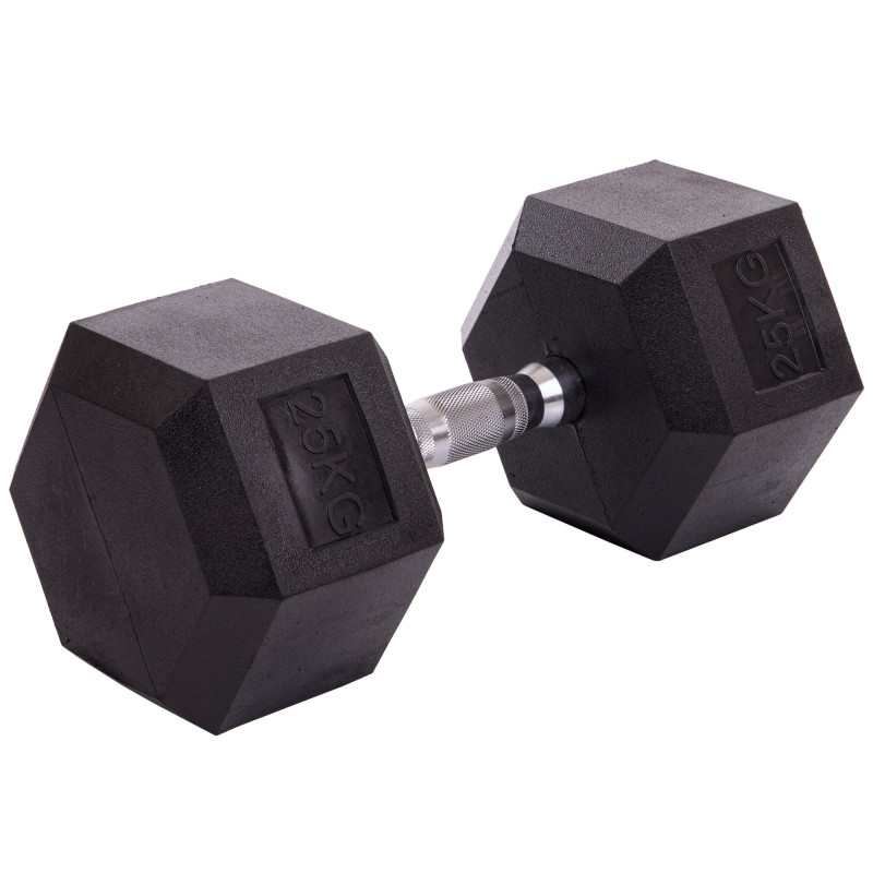 Гантель цельная шестигранная гексагональная обрезиненная 1штука SP-Planeta SC-80075-25 (1x25кг) (сталь хромированная, резина, вес 25кг)