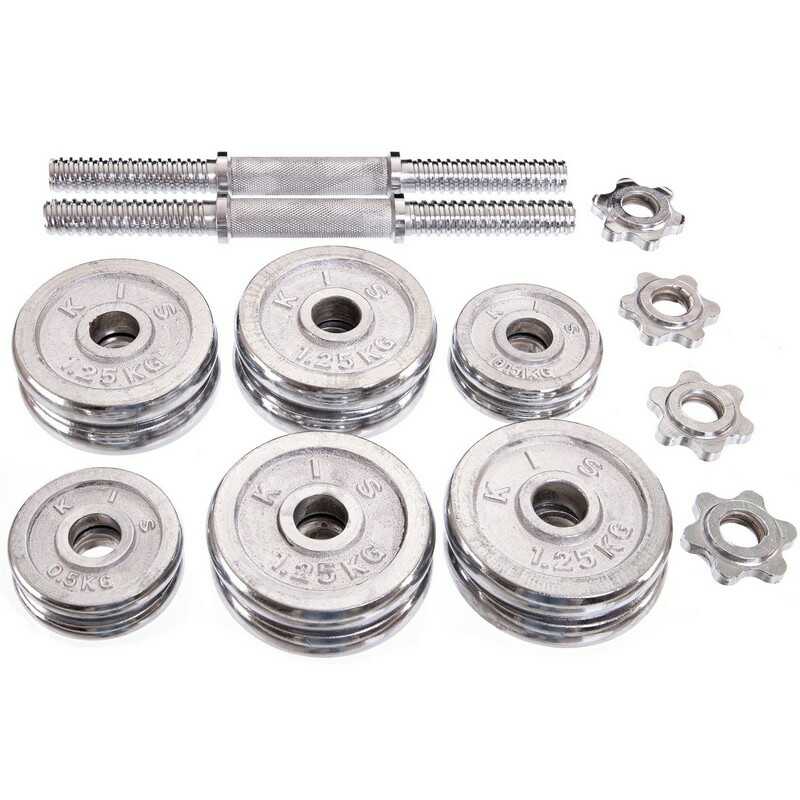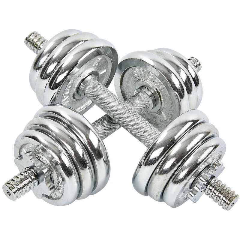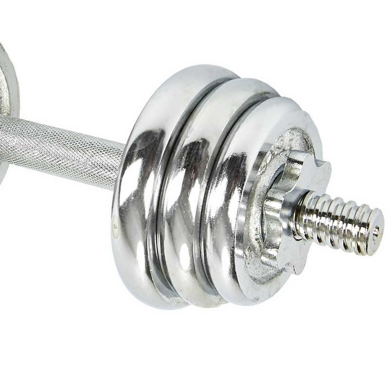 Гантели изготовлены из высококачественной хромированной стали и имеют стильный, эстетически привлекательный дизайн. Комплект включает в себя два грифа, два замка и набор весовых блинов. Для обеспечения максимального комфорта и безопасности тренировок на центральную часть грифов (область захвата) нанесены насечки, что предотвращает скольжение ладони. В то же время звездообразные замки (гайки Вейдера) позволяют быстро собрать/разобрать гантели и обеспечивают надёжную фиксацию блинов – они не болтаются и тем более не могут упасть