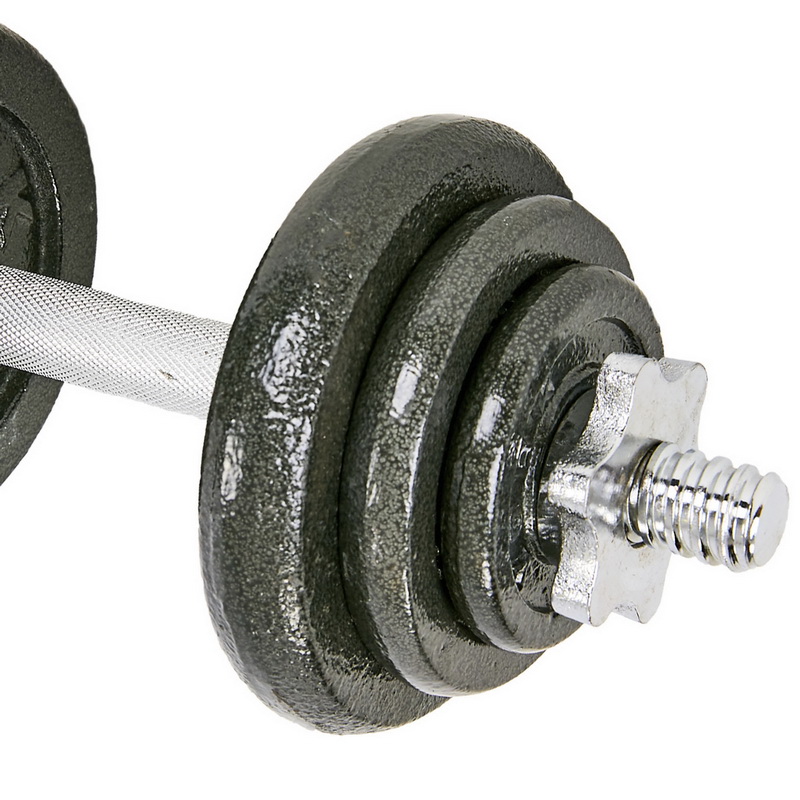 Гантели изготовлены из высококачественной хромированной стали и имеют стильный, эстетически привлекательный дизайн. Комплект включает в себя два грифа, два замка и набор весовых блинов. Для обеспечения максимального комфорта и безопасности тренировок на центральную часть грифов (область захвата) нанесены насечки, что предотвращает скольжение ладони. В то же время звездообразные замки (гайки Вейдера) позволяют быстро собрать/разобрать гантели и обеспечивают надёжную фиксацию блинов – они не болтаются и тем более не могут упасть