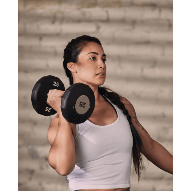 Фиксированные гантели Evo доступны в вариантах от 1 до 60 кг. От 1 до 10 кг вес увеличивается с шагом в 1 кг, а от 12 до 60 кг – с шагом в 2 кг.