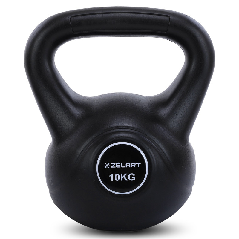 Гиря тренировочная цельная пластиковая Zelart TA-5427-10 10кг (наполнение цемент, черный)