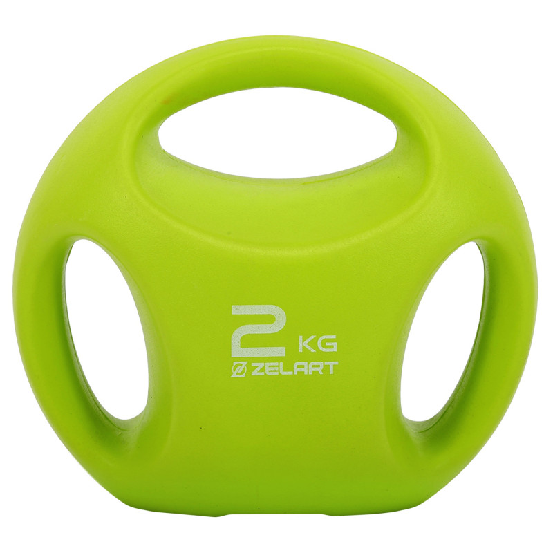 Гиря цельная пластиковая PE с тройным хватом Zelart TA-2670-2 2кг (наполнение цемент, салатовый) MD2223