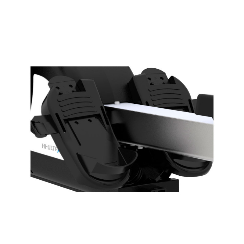 - Широкие упорные платформы для ног с регулируемыми фиксаторами ступни.
