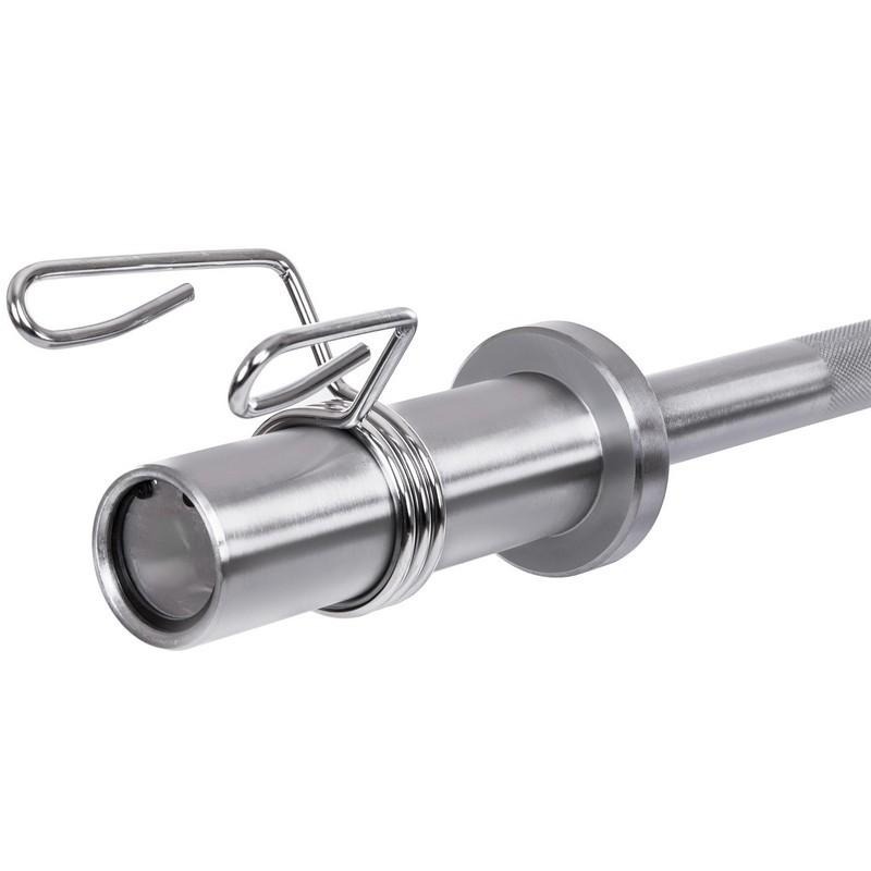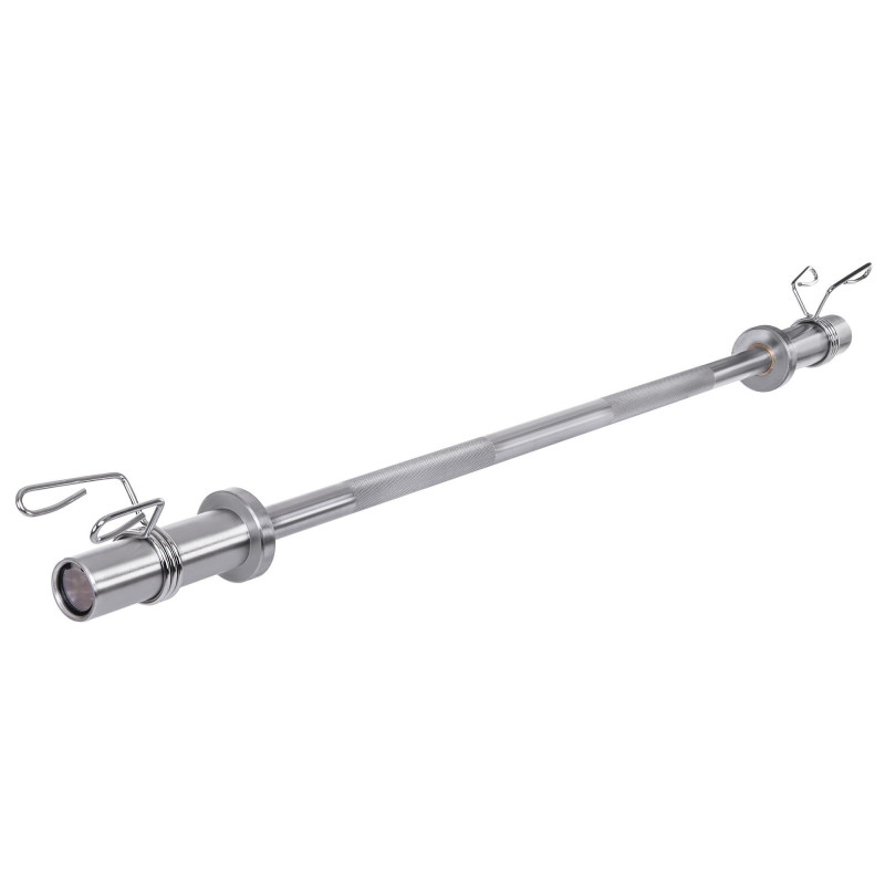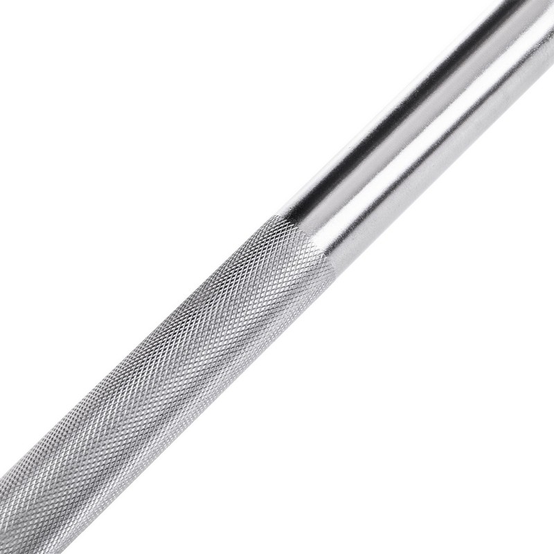Для изготовления вала грифа используется легированная сталь, которая отличается высокой прочностью и устойчивостью на разрыв/изгиб. На его поверхности имеется две зоны с накатом (мелкой V-образной насечкой), которая предотвращает скольжение ладоней, тем самым обеспечивая атлету надёжный хват и безопасность тренировки.